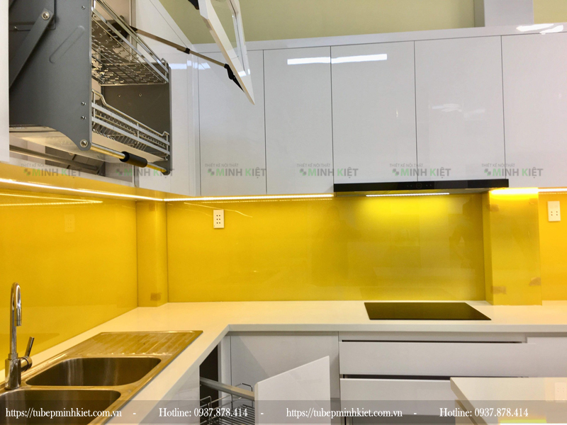 Công trình tủ bếp đẹp màu trắng nhà chị Như được Minh Kiệt thi công tại quận 6.